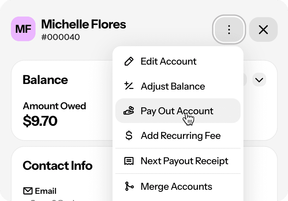Pay out by date, full balance, or partial payout via a manual adjustment