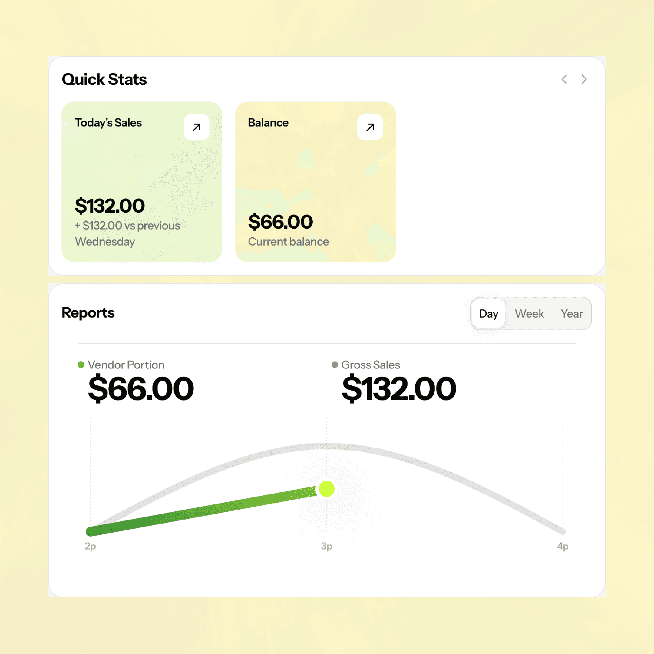 Vendors can see their current balance in real time, so you spend less time fielding "how much have I made?" questions.