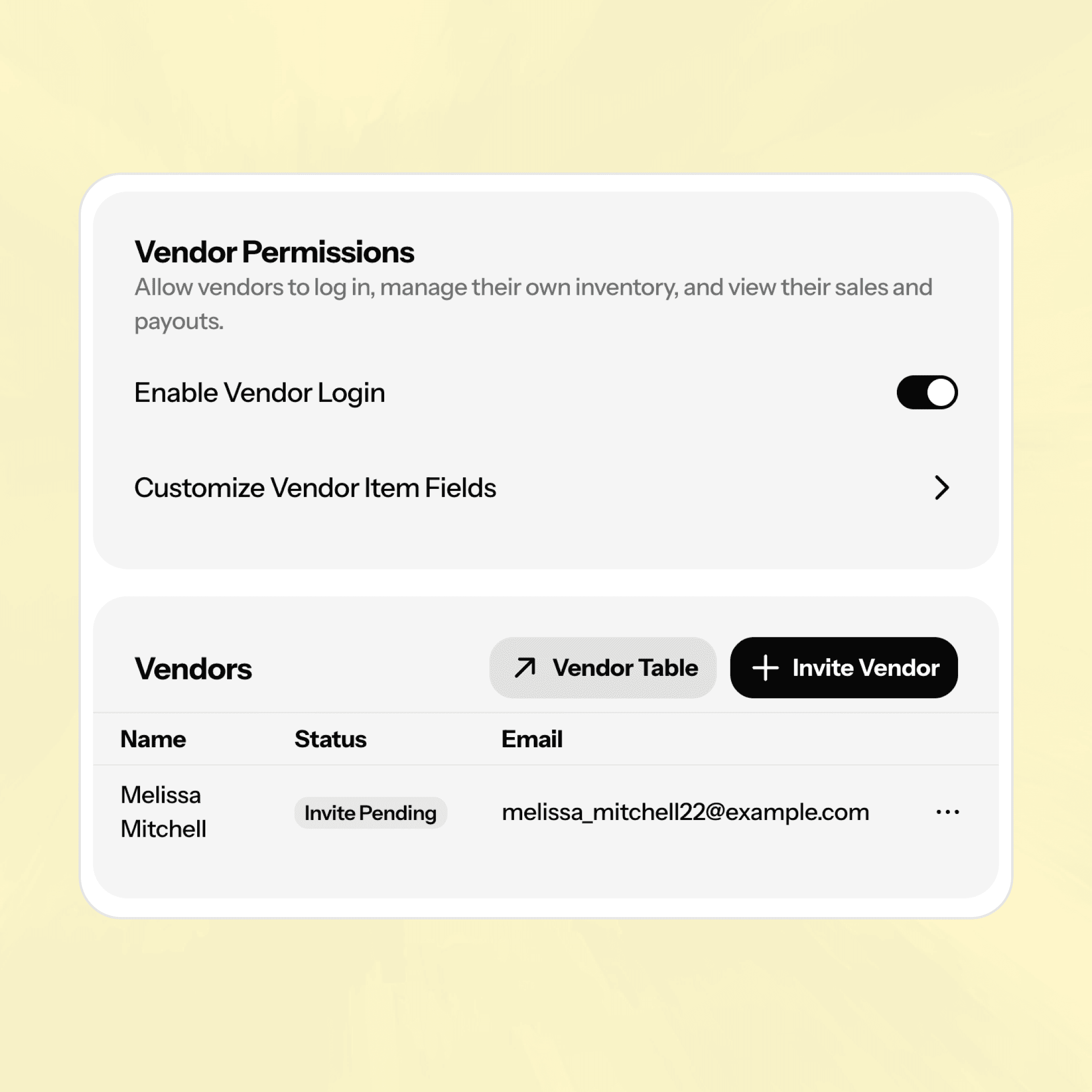 Hide any item fields you don't want vendors touching, then send them the login link. They'll set up their profile, start adding items, and you're off to the races.