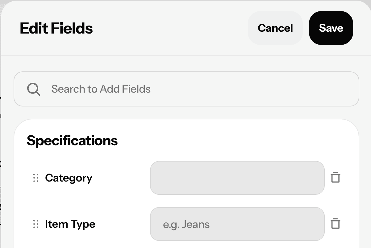 Customizable item fields