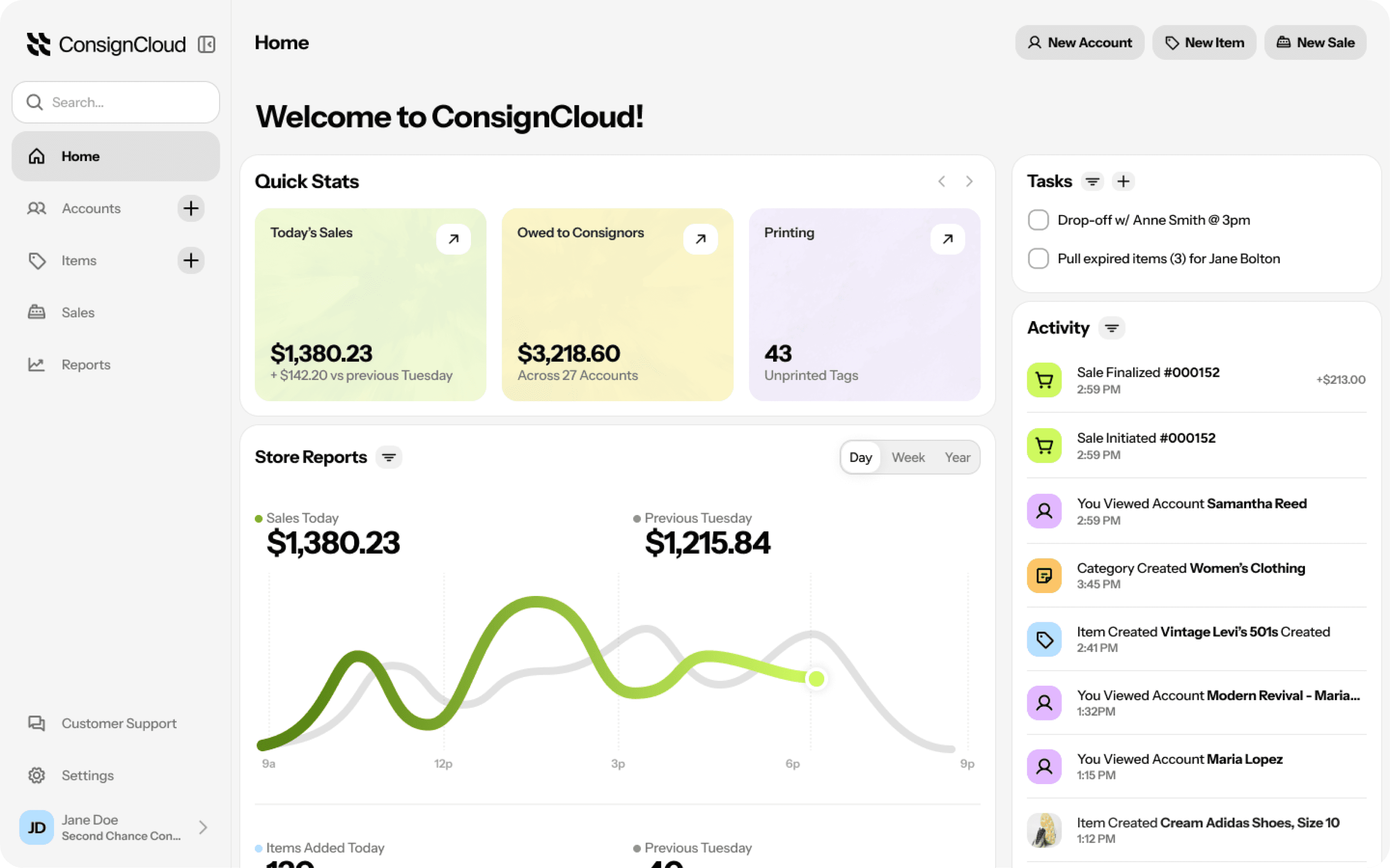 Take ConsignCloud for a test drive using your imported data. Ring up test sales, set up payment processing, connect Shopify or Square, check reports, and see how everything fits your day-to-day workflow.